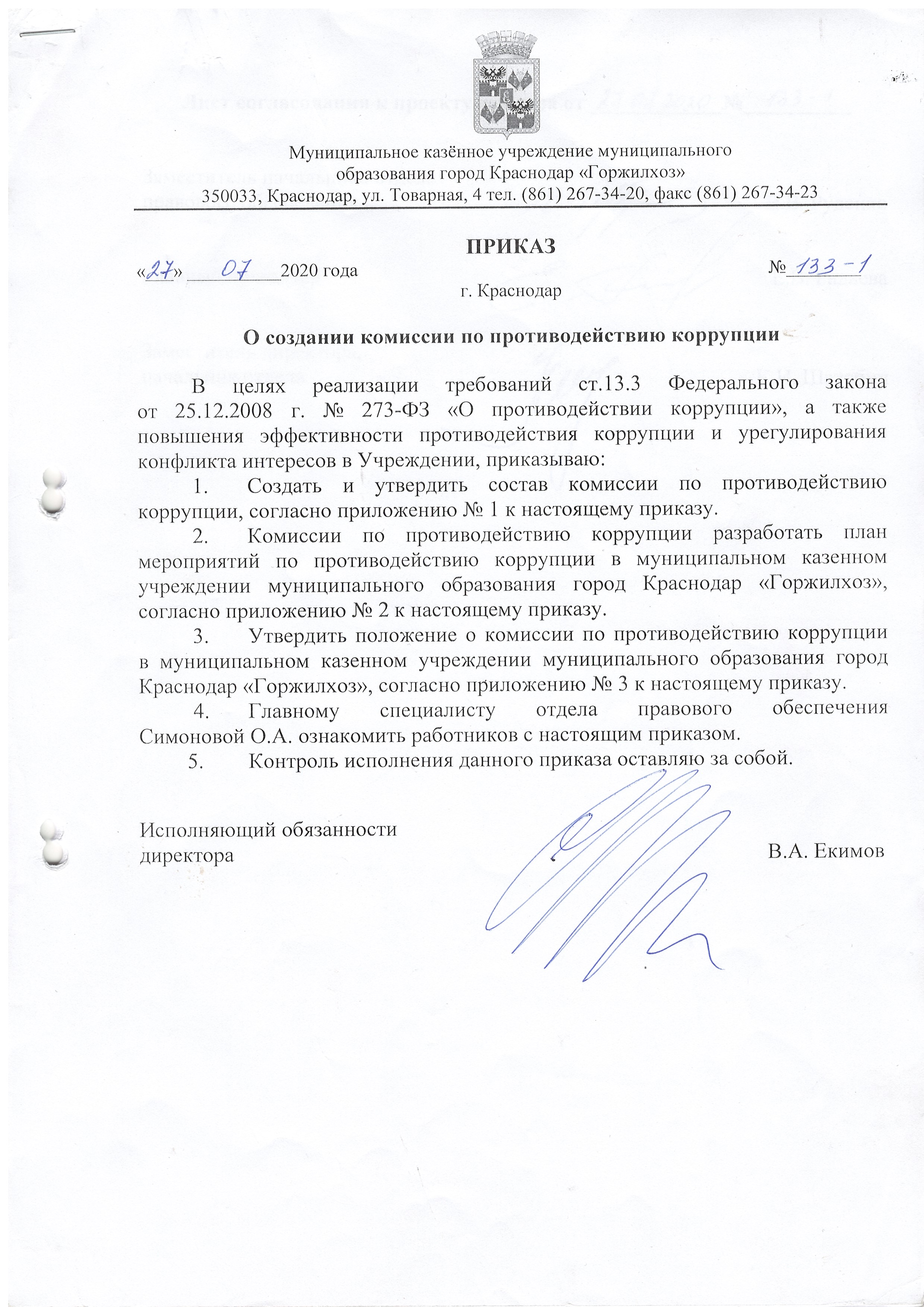 Приказы Учреждения в сфере противодействия коррупции