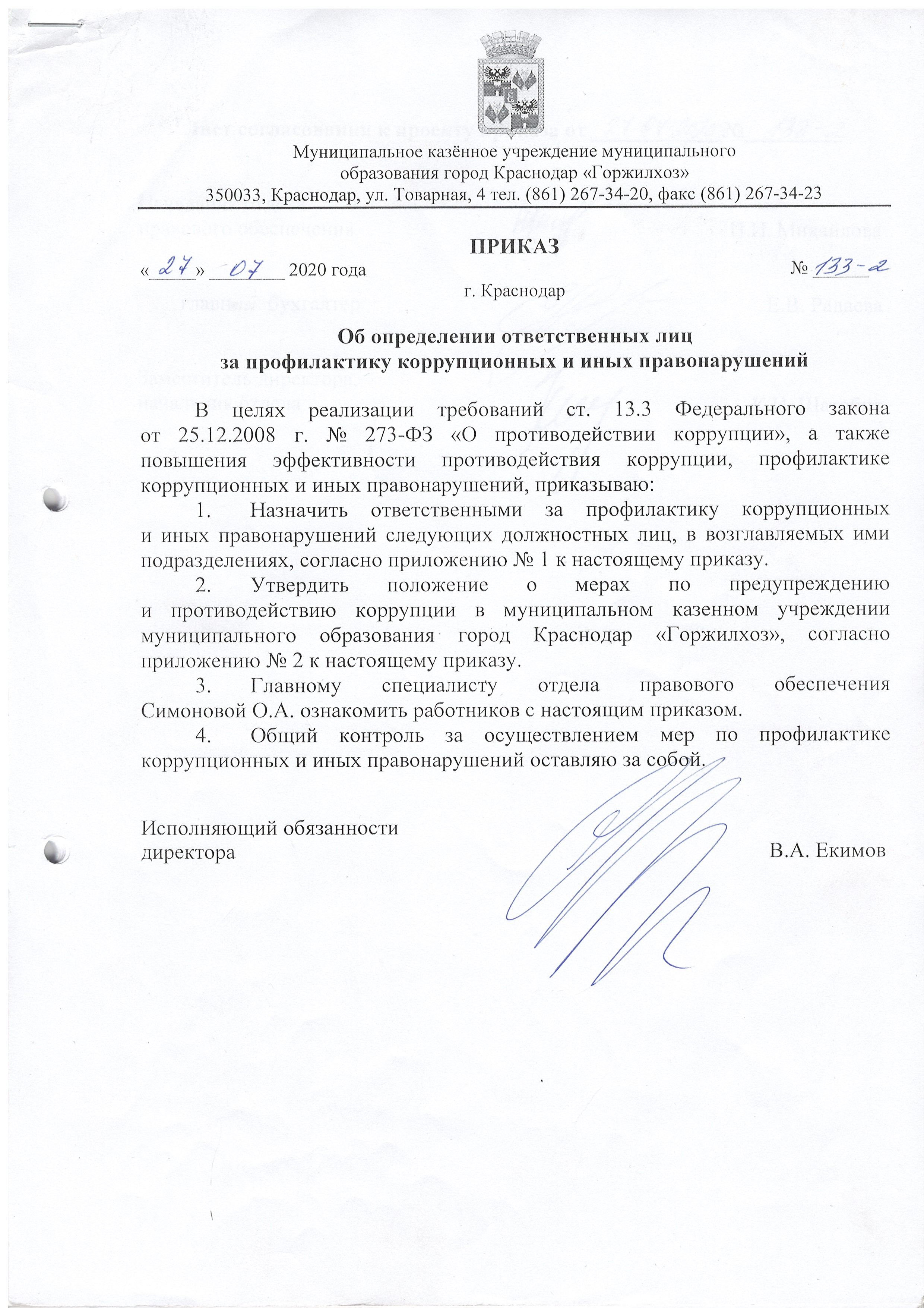 Приказы Учреждения в сфере противодействия коррупции